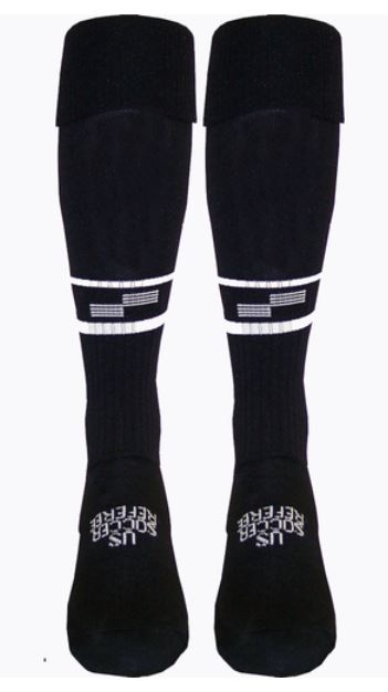 U.S. SOCCER REFEREE will be embroidered on top of foot. Made in Italy. 65% polyester, 25% nylon & 10% spandex.